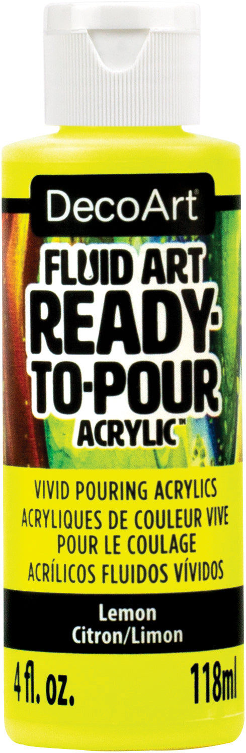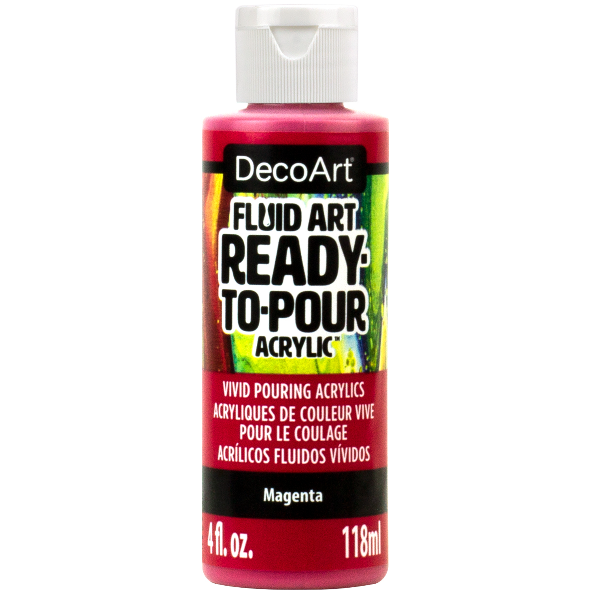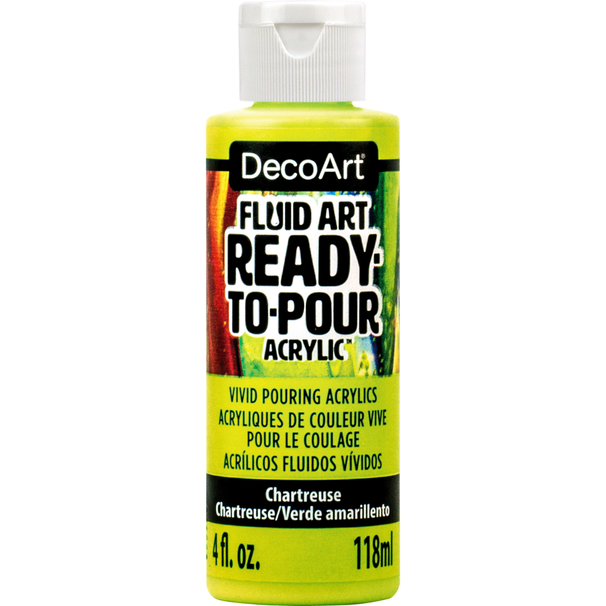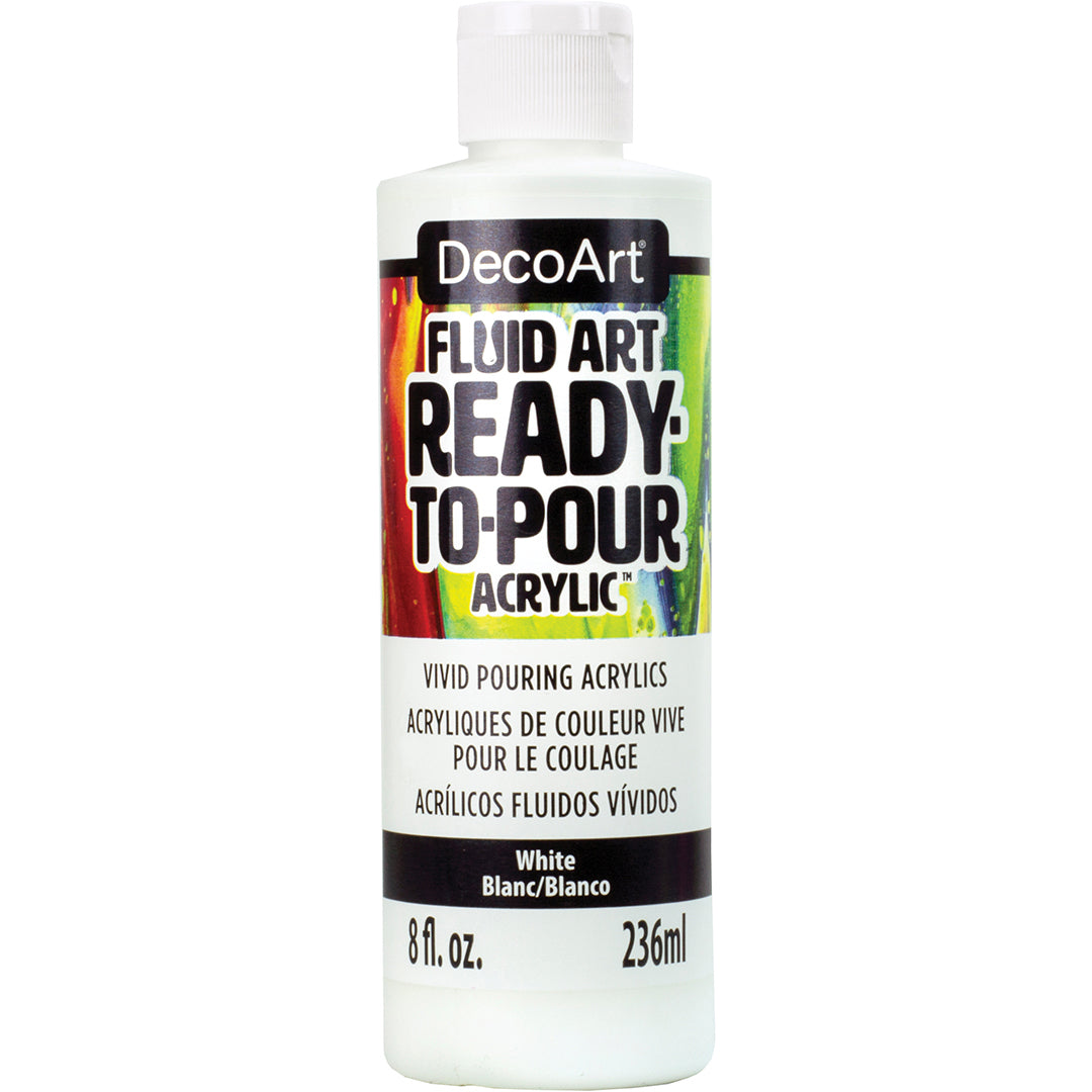 Fluid Art Ready-to-Pour Acrylic does not need to be mixed with any other mediums or products to use for pouring. Available in traditional colors, metallics, and neons.